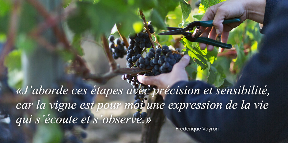 Tous les travaux en vert sont effectués manuellement, ce qui permet de répondre aux conditions climatiques et particulières de chaque millésime.